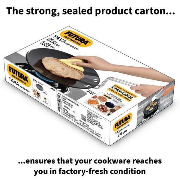 On those busy mornings, whip up the perfect pancake, make crispy dosa or simply cook puffy omelette quickly with this Futura HA Tawa from Hawkins. Constructed using high quality aluminium , this hard anodized tawa ensures even distribution of heat throughout the surface. Designed with a non-induction bottom , this tawa is ideal for use on gas stoves. To enable easy handling and shifting, this Hawkins Futura HA Tawa is enhanced with a stay-cool and comfortable stainless steel handle.