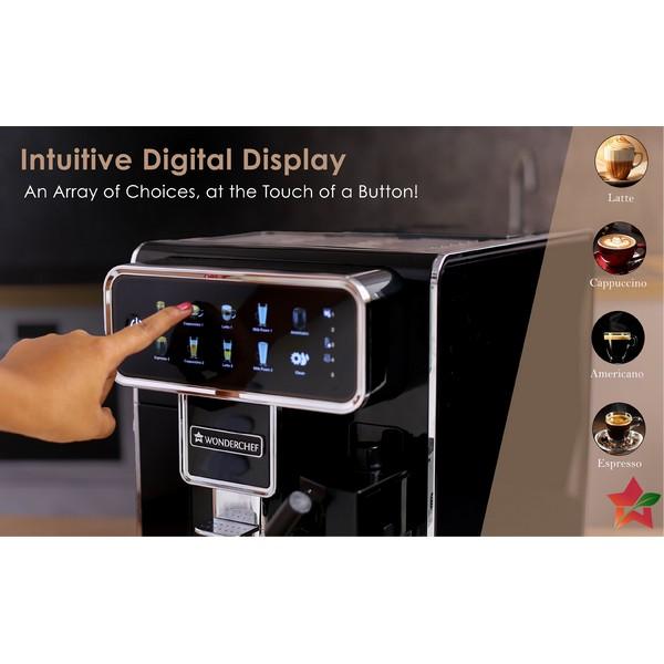 One Touch Coffee Experience: Enjoy perfect espresso, cappuccino or latte with Wonderchef Regenta Fully-Automatic Coffee Machine. This bean-to-cup fully automatic machine grinds the beans for that fresh taste every time, and even froths the milk automatically so you can have the perfect experience at the touch of a button.