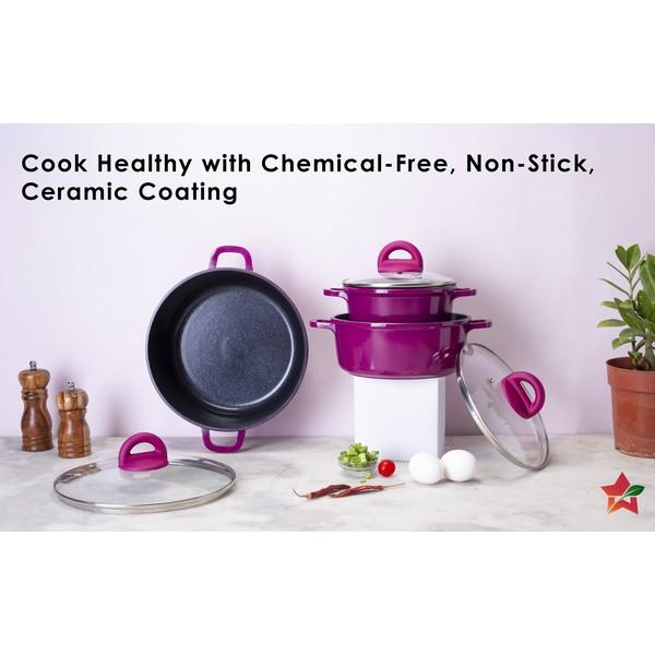 Wonderchef Ceramide Die-cast Casserole Set (Pink)