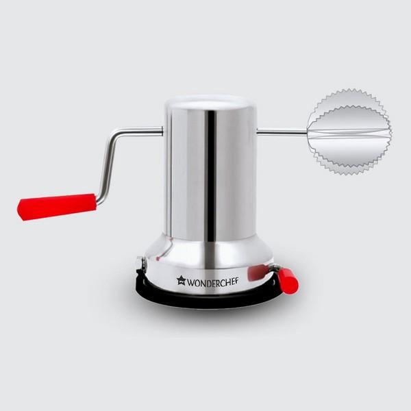 HIGH-QUALITY CONSTRUCTION: Wonderchef coconut scraper is constructed using stainless steel, ensuring its longevity and resistance to wear and tear. ERGONOMICALLY DESIGNED HANDLE: The scraper is designed with user comfort in mind. The scraper comes with a rotatable handle with a comfortable grip, allowing for easy and efficient scraping of coconuts without straining your hands or wrists. SHARP BLADES: The scraper is equipped with sharp and sturdy blades specifically designed for scraping coconuts. These blades effectively remove the coconut meat from the shell, ensuring clean and precise scraping. COMPACT AND PORTABLE: The scraper is compact and lightweight, making it easy to store and transport. Its portable design allows you to use it anywhere, whether in the kitchen or even during outdoor activities like picnics or camping. EASY TO USE: The scraper is straightforward to use, requiring manual effort to scrape the coconut. Simply hold the coconut against the blades and rotate the handle, allowing the sharp blades to remove the meat from the shell. EASY TO CLEAN: The scraper is designed with ease of cleaning in mind. After use, you can easily detach the blades for thorough cleaning and maintenance. It is important to clean the scraper after each use to prevent any residue from accumulating. TRADITIONAL AND AUTHENTIC: The manual coconut scraper offers a traditional and authentic way of scraping coconuts, allowing you to experience the process in its original form. This can be appealing to individuals who prefer a more hands-on approach to food preparation.