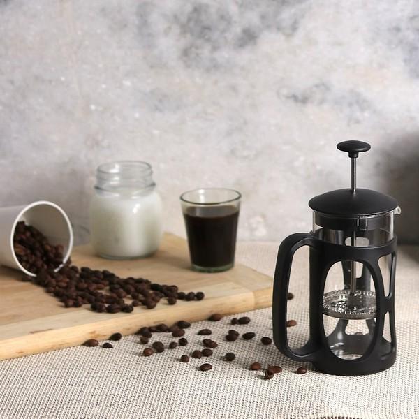 EASY BREWING PROCESS: Simply add a spoonful of coffee powder per cup to the jar, ensuring the grind is on the coarse side as per French Press specifications. Add boiling water, then push the stainless steel plunger halfway down to initiate the brewing process. After 3 minutes, push the plunger all the way down, and your coffee is ready to pour.