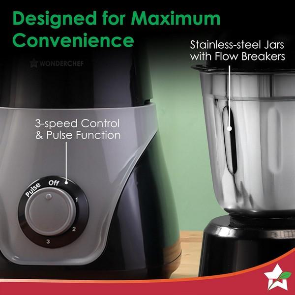 - One Machine, Many Possibilities: The Galaxy Mixer Grinder has four jars of varying capacities and super sharp stainless steel blades, perfect for dry grinding, wet grinding, chutney making, juicing, and blending. All-In-One Solution: Be it chutneys, masalas, batters, purees, pastes, podis, milkshakes, or smoothies, the Galaxy mixer grinder handles even the toughest ingredients with ease.