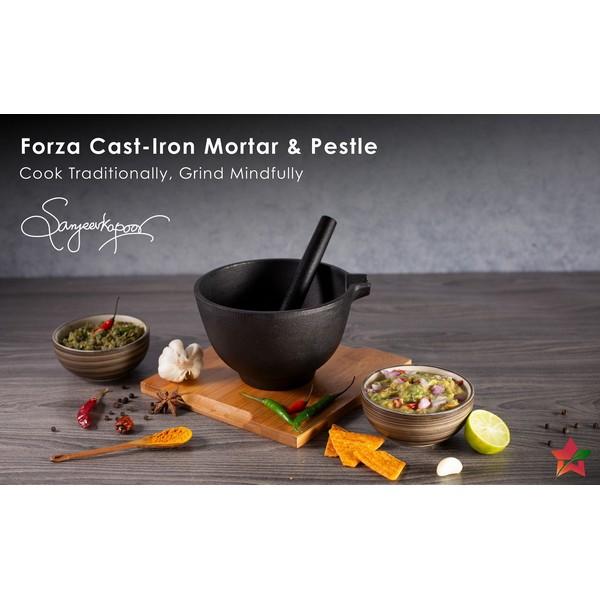 If you want to grind whole spices, nuts, or other cooking ingredients, the Wonderchef Forza Pre-seasoned Cast Iron Mortar and Pestle can help you do it all. It is a must-have item in your kitchen due to its convenience of use. This mortar and pestle also enhance the flavour of any food you make as it is made of iron. Additionally, this mortar and pestle gives the feeling of traditional pounding and grinding, thanks to its heavy and robust construction.