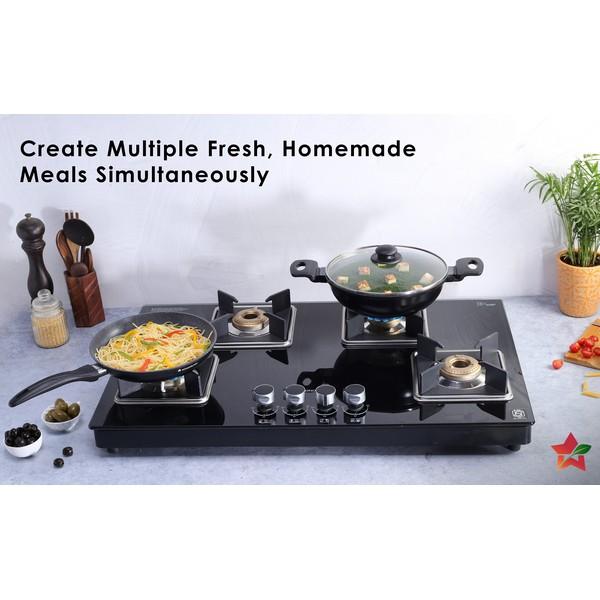 High efficiency forged brass burners, toughened glass and ergonomically designed knobs make it the perfect choice for all types of kitchens
