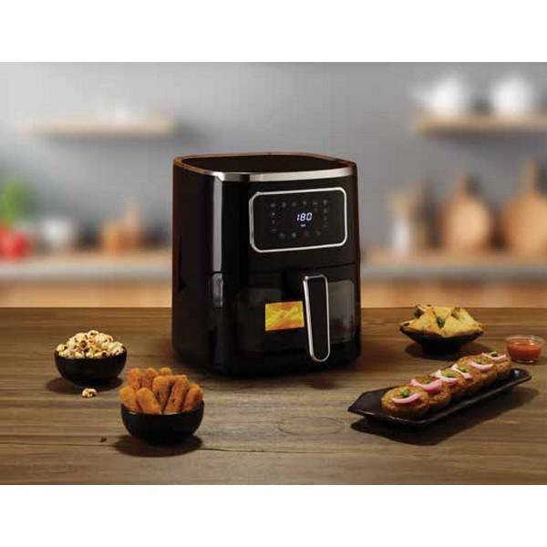 Cook healthy and crispy snacks with almost no oil. 7 Pre-set functions including baking, grilling, frying, roasting. Window and interior lights to help you monitor. Comes with digital display for precise temperature and time adjustments. Built-in memory to resume cooking if stopped in-between. 1450W | 5.0L.