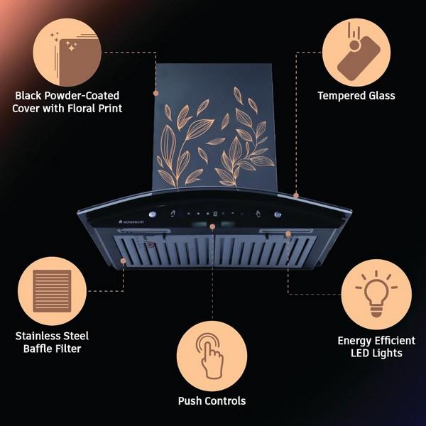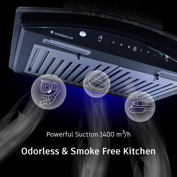 (General Ultima features apply: Powerful suction capacity of 1400 M 3 / h , gesture and touch control for speed and power, LED light, tempered glass, auto-clean technology. Specific to this model: Baffle Filter.)