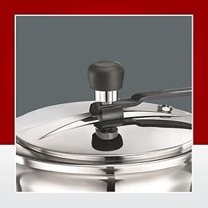 SPILLAGE CONTROL LID : Distinctly Designed Spillage Control Lid Our innovative Deep Lid design prevents the messy, starchy water from flowing down the cooker. It keeps your kitchen spotlessly clean.